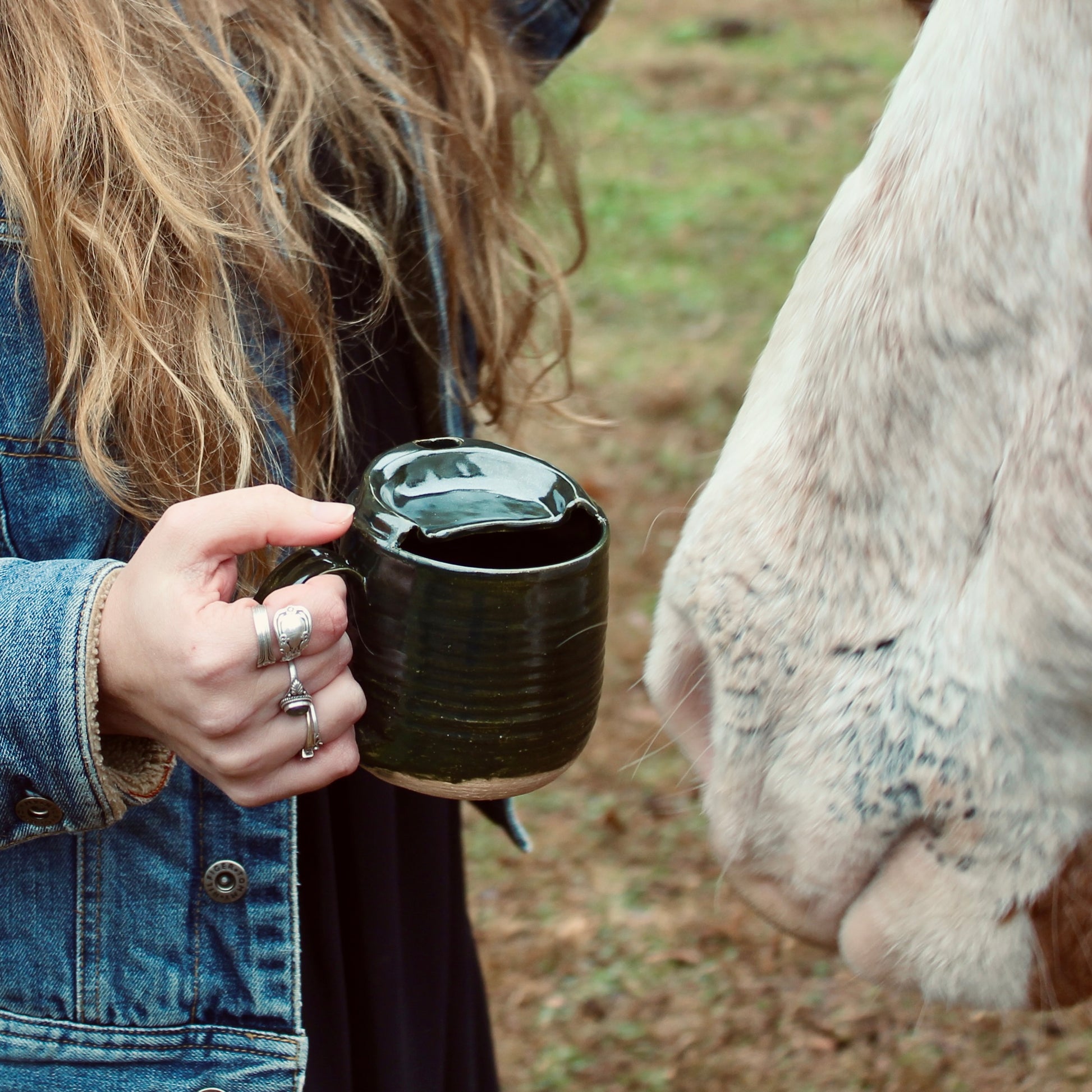 handmade traveler mug for the busy friends. made with a half top to minimize spills